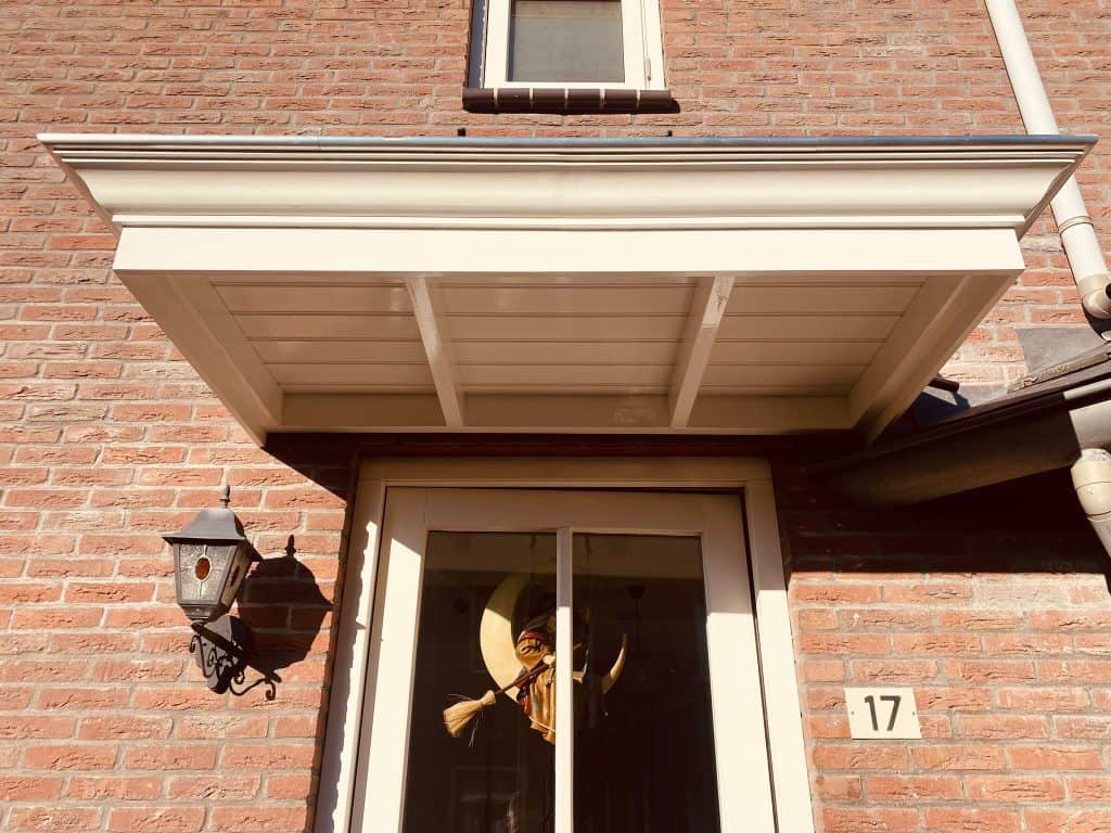 Veel woningen uit eerdere bouwperiodes hebben nog een standaard betonnen afdakje boven de voordeur. Praktisch, maar vaak weinig stijlvol en